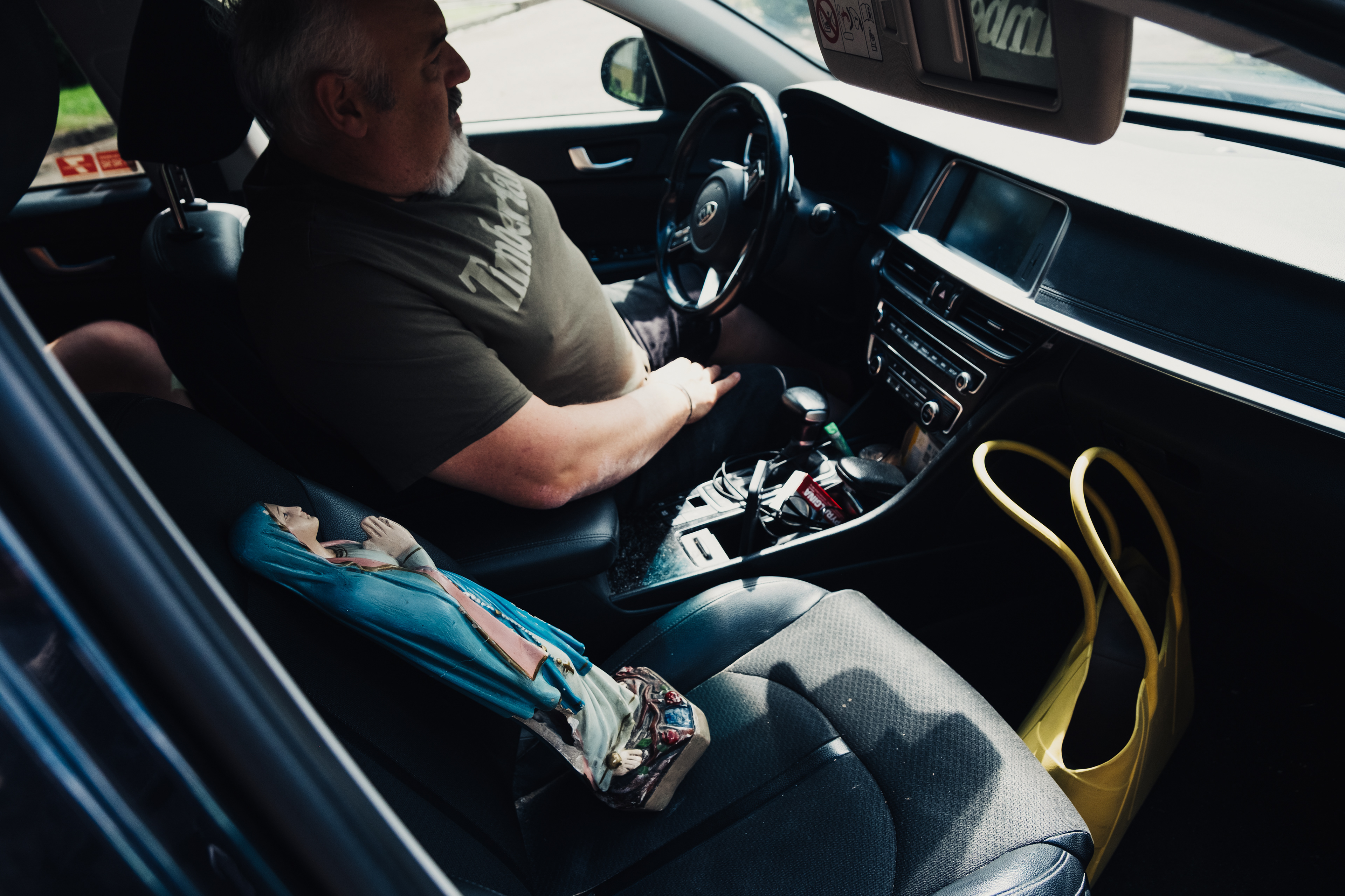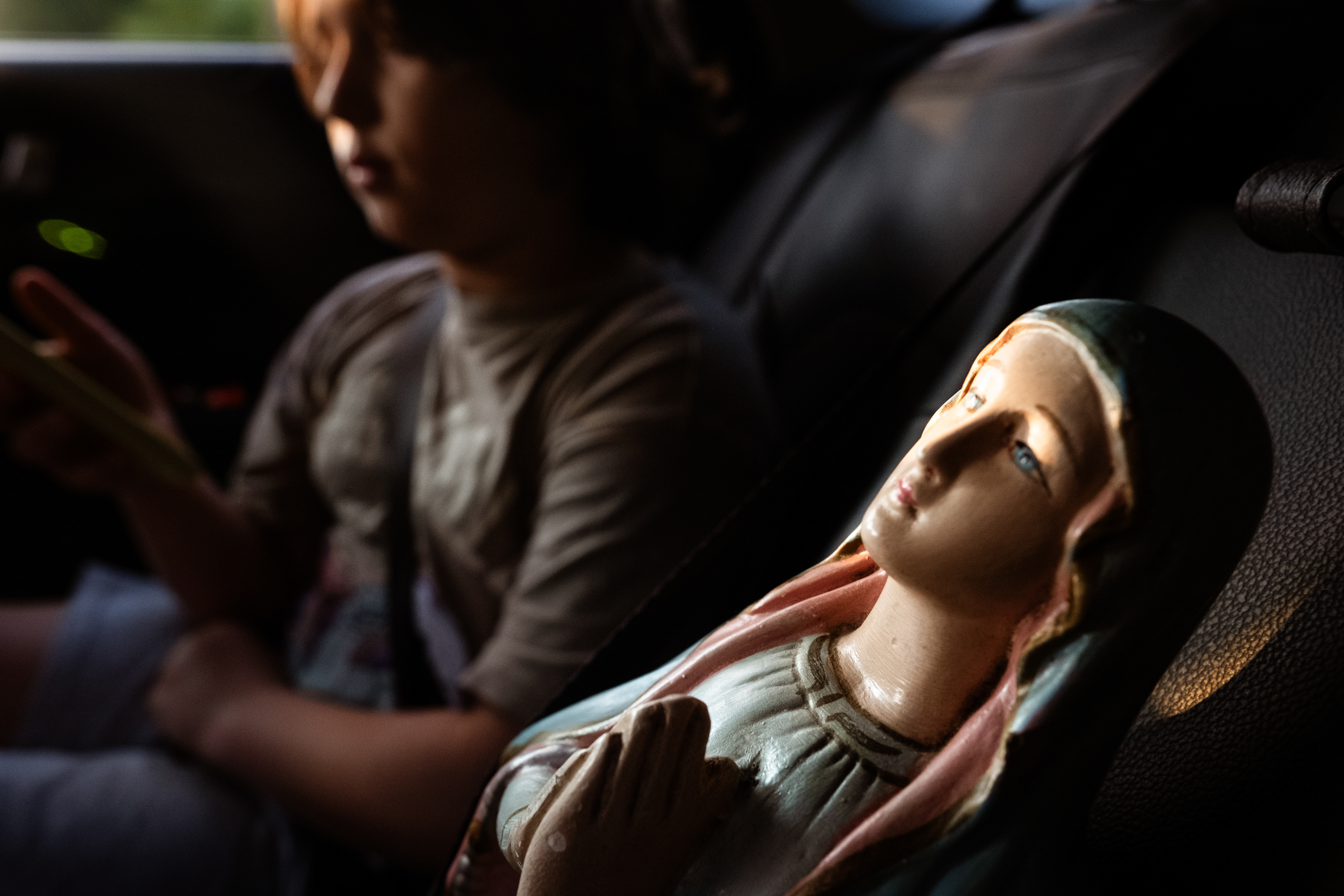 Madonna, jak nazywa Ją mój mąż Włoch, zajęła miejsce pasażera na tylnym siedzeniu. Najpierw trzymałam Ją w ramionach, potem przypięłam pasami na środkowym miejscu, pomiędzy mną a najmłodszym synem. Gdy w czasie podróży , we Włoszech, dołączył Pierworodny, znowu trzymałam Ją przy sobie, w ramionach i między kolanami. Tak się zaczęła nasza wspólna podróż, której finału nie znam, ani w sensie projektu, ani fizycznej destynacji czy duchowej podróży - podróży wspomnień, spotkań, odwiedzin....Moi najbliżsi i przyjaciele na różnych etapach drogi różnie reagują na to moje "pielgrzymowanie" z Madonną. Nastoletnia córka posądza mnie o skrajną dewocję, mąż sekunduje projektowi, choć zdarza mu się nie rozumieć, tej mojej fiksacji jak mówi, najmłodszy syn widzi w tym coś w rodzaju zabawy, mama cieszy się, że figurka jest "potrzebna" i ma drugie życie, a tata uśmiecha się z sympatią nie mówiąc nic. Siostra przesyła mi filmiki ze spadającymi Madonnami i autorskimi litaniami, przypomina o ważnych świętach Maryjnych. Są jeszcze przygodni ludzie i towarzysze podróży. Sąsiadka z naszej kamienicy, która przyniosła z własnej inicjatywy kawał folii bąbelkowej, na wypadek potrzeby zabezpieczenia figurki w czasie drogi. Przyjaciel rodziny, który przytuliwszy figurkę opowiedział mi, że na strychu starej mleczarni, która zaadapotował na pizzerię znalazł także figurkę Maryi i wzruszał się, gdy opowiadałam mu losy mojej Madonny. Była też młoda kobieta - fotografka we Włoszech, która zza moich pleców ukradkiem fotografowała Madonnę. Albo turyści w Grecji przy pomniku upamiętniającym masowe samobójstwo kobiet i dzieci w XIX wieku, którzy robili sobie z Nią selfy. A ja? Czekam, co przyniesie mi ta podróż, choć dzisiaj , gdy mam za sobą niemal 6 tygodni wakacji z Maryją wiem, że jest w tym naszym wędrowaniu coś dla mnie bardzo ważnego. Może to rodzaj duchowego połączenia z przodkiniami? Z prababcią, która była ważną osobą w okresie mojego dzieciństwa i ukochaną babcią, z której odejściem, mimo upływu 25 lat, wciąż się nie pogodziłam. A może to łącznik pomiędzy mamą a mną, bo trudno nam znaleźć wspólny język, tak różne jesteśmy.