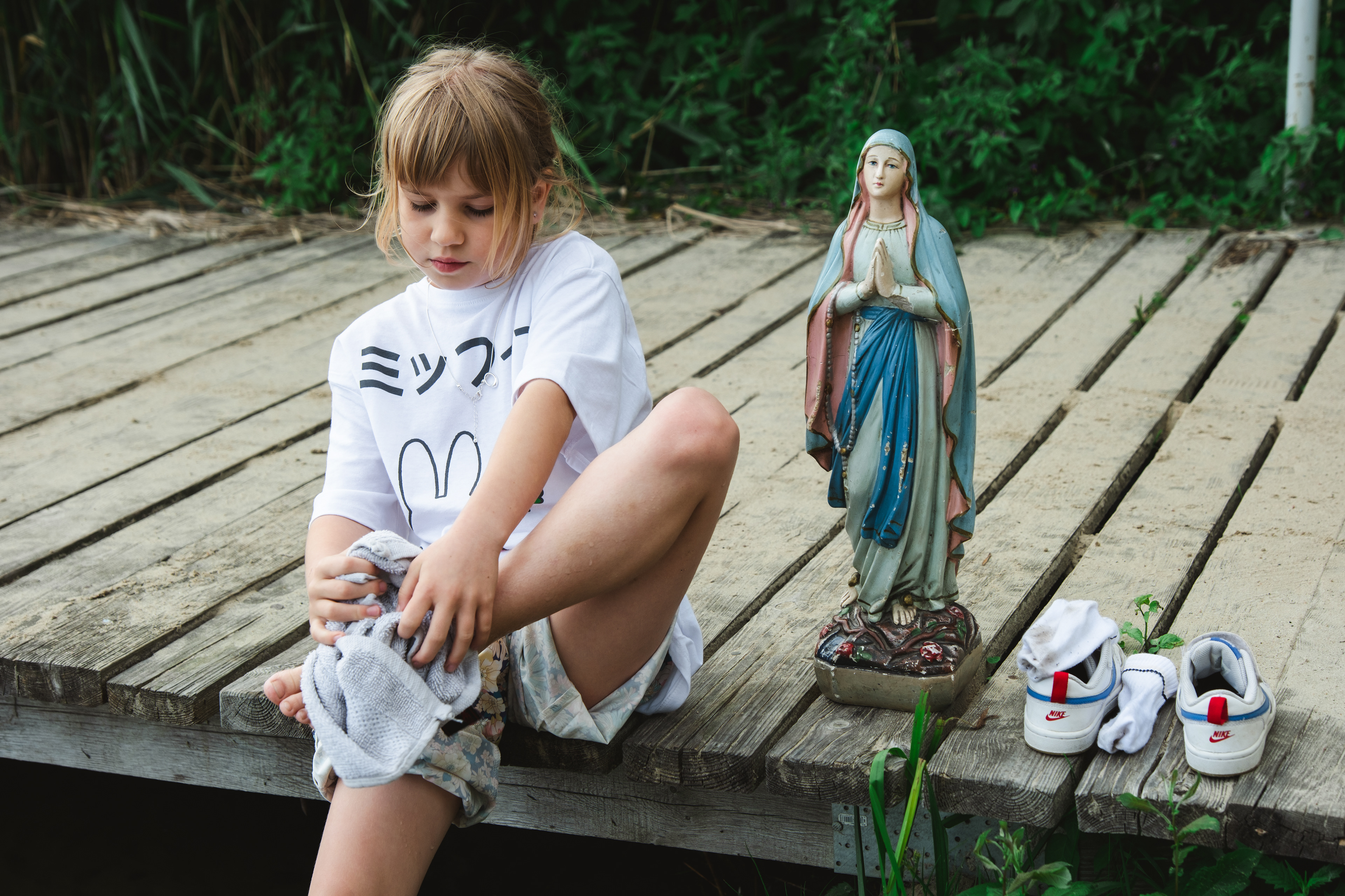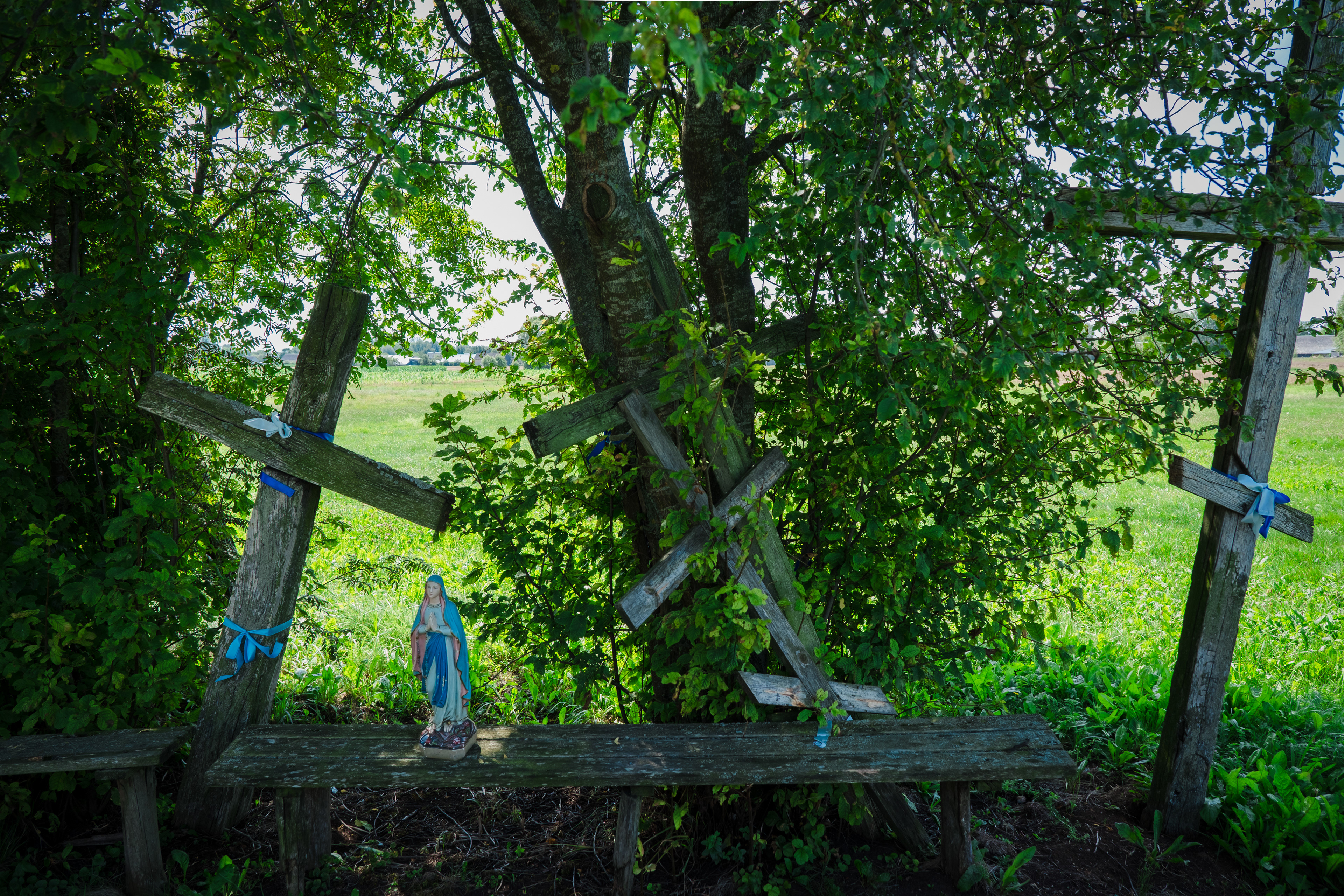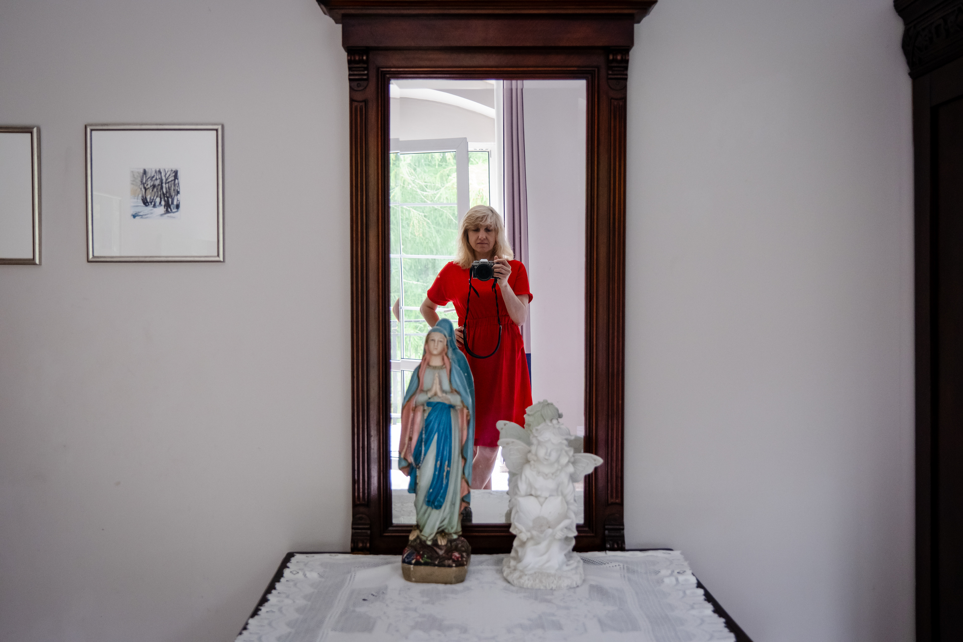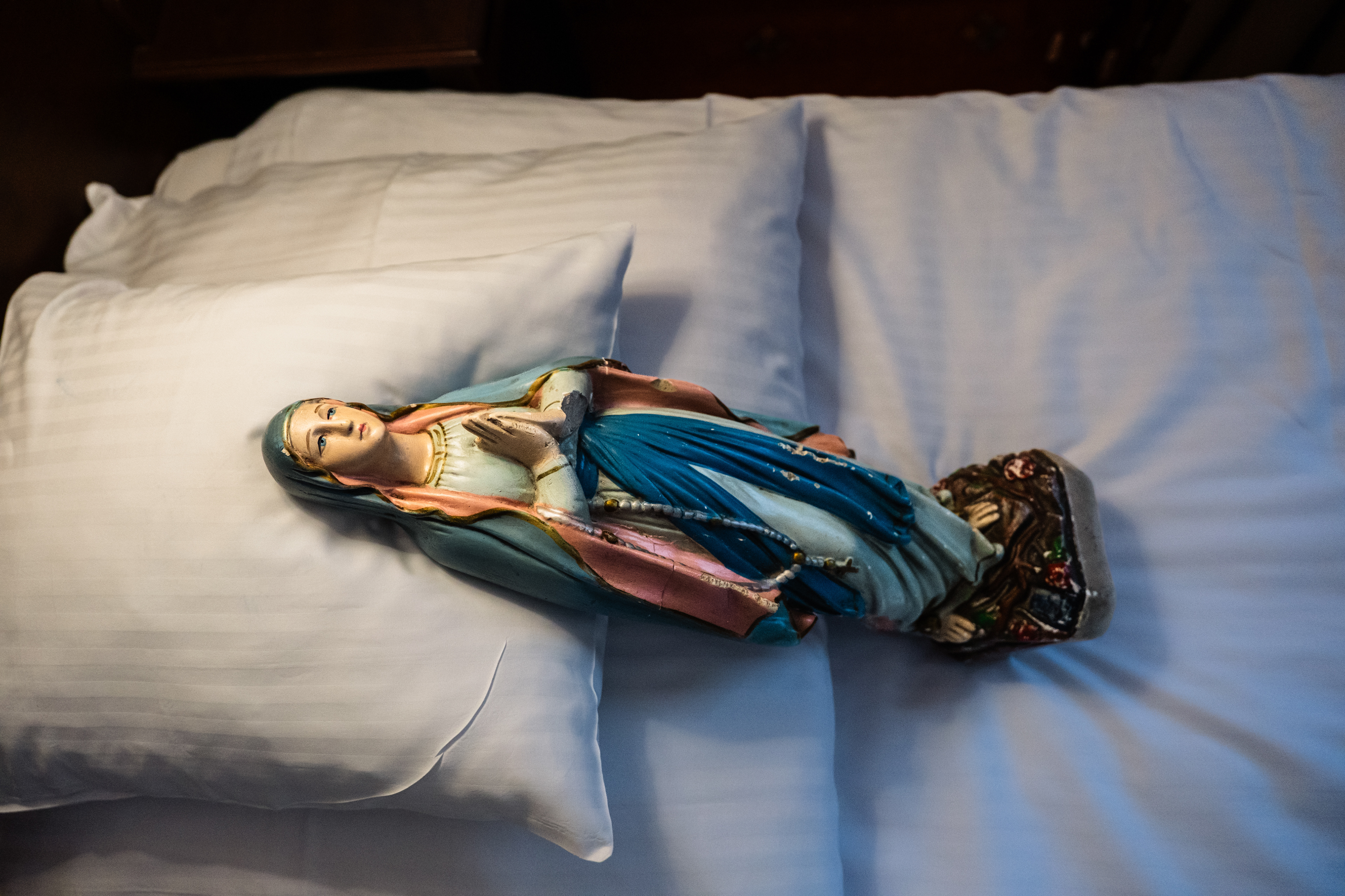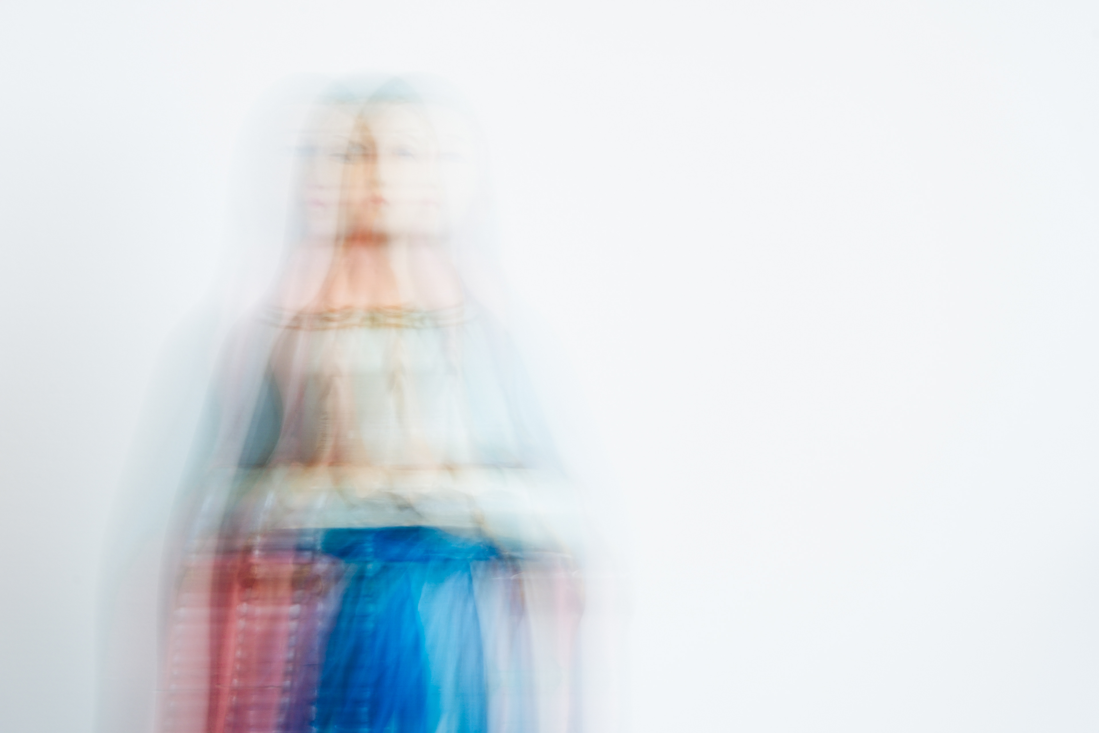 30 marca 2024 r. figurka Maryi zeszła z szafy. I tak zaczął się nowy rozdział. Mama opowiedziała mi historię, której wcześniej nie znałam, o swojej komunii św. W Poznaniu Mariusz Forecki z wielowątkowej opowieści, którą dzieliłam się opowiadając o swoim pomyśle na projekt "wyjął" Maryjkę. Powstał pomysł, by fotografować Ją w Lubniewicach, tam gdzie mieszkała przez ostatnie 60 lat. Ale los chciał inaczej. Do Lubniewic przyjechałam tylko na jeden dzień w maju, nomen omen na komunię mojego chrześniaka. Wiedząc, że prawdopodobnie do września nie będę mogła znowu przyjechać zabrałam figurkę do Torunia, nie wiedząc zupełnie, że to początek Jej wielkiej podróży.